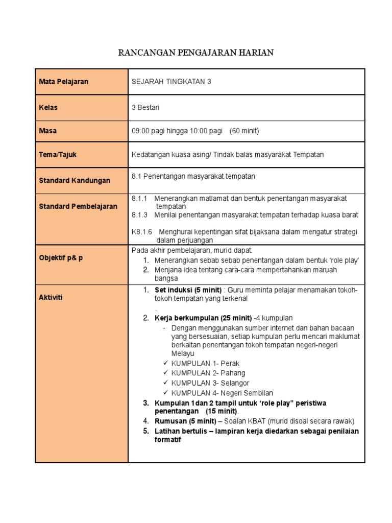 F Kepentingan mempelajari dan menghayati sejarah. Bekerjasama dengan British untuk menentang Jepun. Sempadan negara berasaskan negara bangsa.
