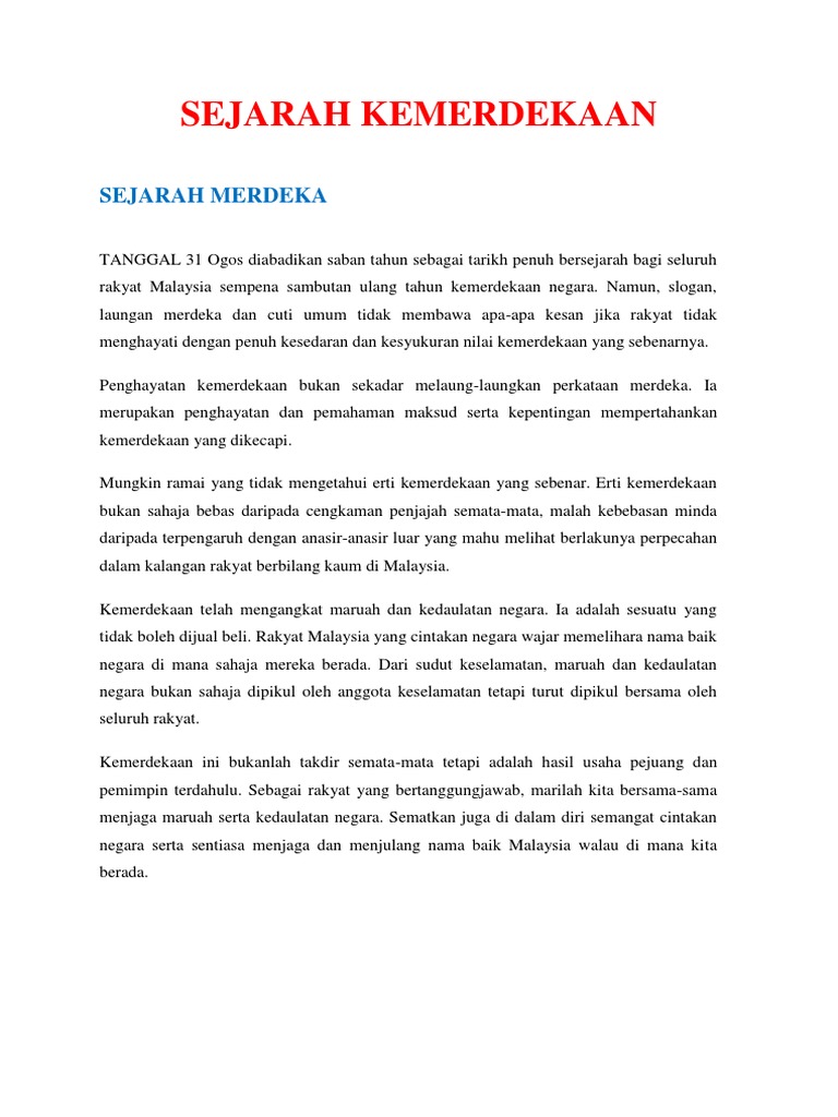 Menyediakan peluang dan kemudahan sukan bagi memenuhi keperluan asasi sosial. Inilah erti sebenar kemerdekaan di Malaysia. Kepentingan Perpaduan Kaum Penduduk Malaysia terdiri dari berbagai kaum Umum mengetahui bahawa Malaysia merupakan sebuah negara yang unit lantaran rakyatnya terdiri daripada pelbagai kaum.